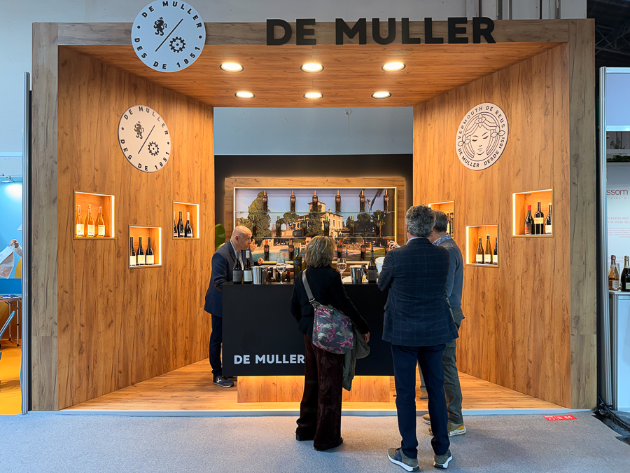 Stand de De Muller, con su gama de vinos presentada al público profesional en la feria.