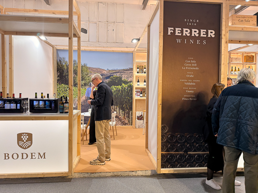 Espacio de Ferrer Wines en la Barcelona Wine Week, con referencias de distintas denominaciones de origen.