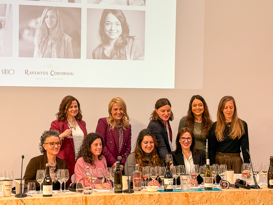 Participaron: Adriana Ochoa (enóloga y directora técnica de Bodegas Ochoa), Ana Carazo (fundadora y enóloga de Bodega La Loba), Anne Cannan (enóloga de Clos Figueras), Jessica Martin (viticultora de Ruku Ruku Wine), Laura Tragant (enóloga de Codorníu), Marta Pedra (enóloga de La Vinyeta), Mayte Calvo de la Banda (directora técnica de Bodegas Bilbaínas) y Pilar Salillas (directora y enóloga de Lagravera).