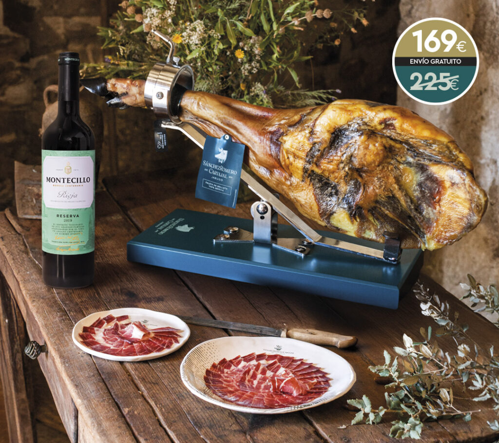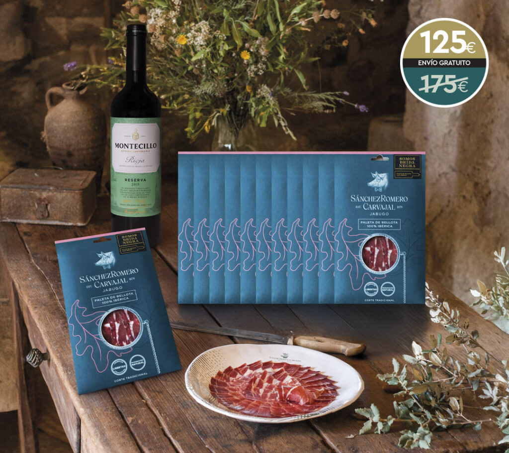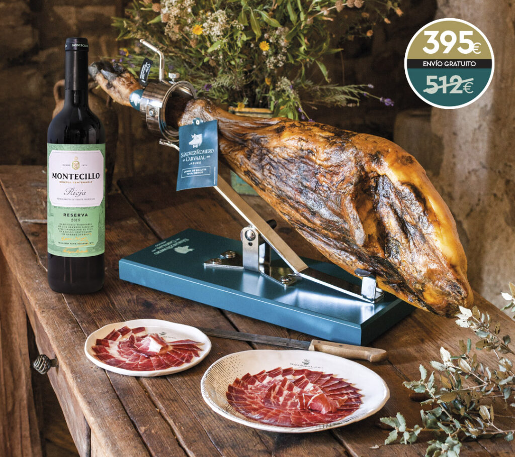 Casa Gourmet vuelve a traer esta Navidad una selección exclusiva de jamón, paleta y paleta loncheada de Bellota 100% Ibérica de Sánchez Romero Carvajal, la marca emblemática de Jabugo y referente absoluto del ibérico de máxima calidad. Estos tres productos llegan en edición especial con envío gratuito (a península) y una botella de Montecillo Reserva, uno de los grandes clásicos de Rioja.