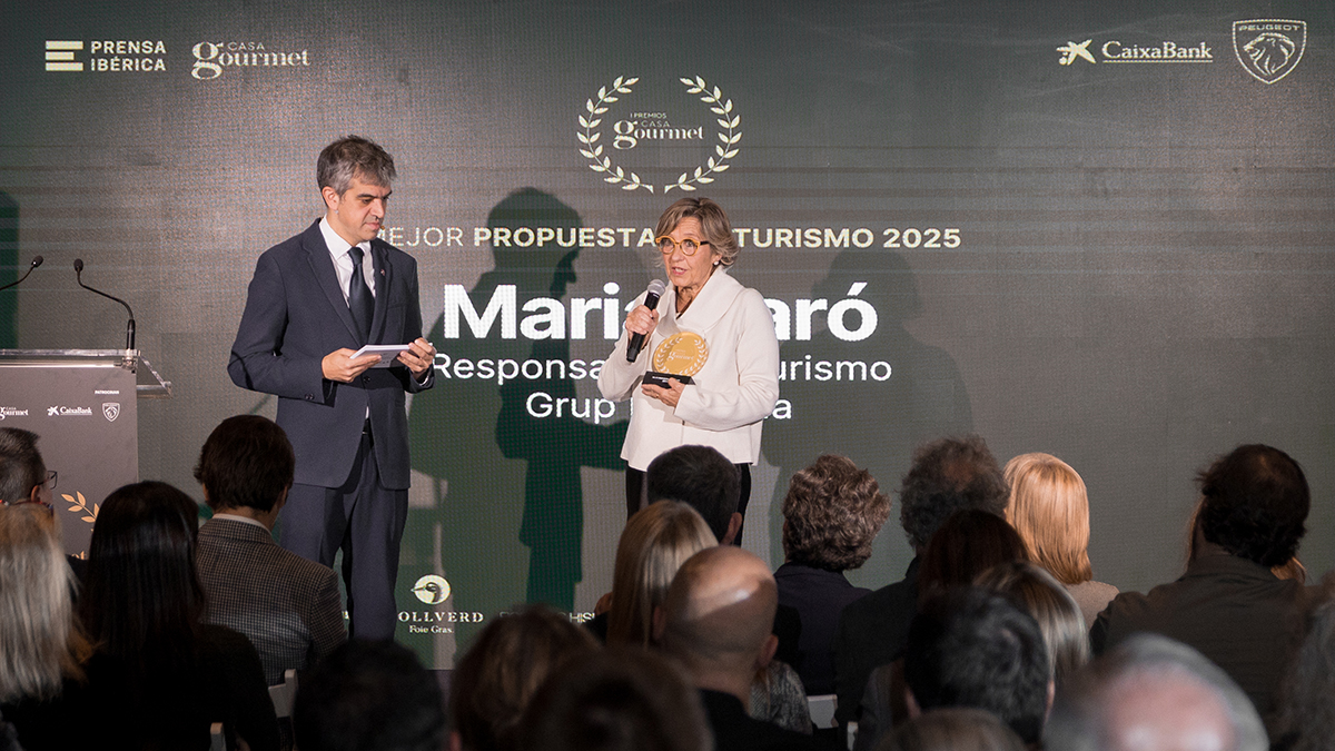 En el ámbito del enoturismo, el premio viajó hasta el Empordà. Grup Peralada obtuvo el Premio a la Mejor Propuesta Enoturística 2025 por su experiencia integral que une vino, arquitectura de autor, paisaje, gastronomía y hotelería de lujo. Subió a recoger el galardón Maria Barò, responsable de Enoturismo, en un año en que Perelada ha vuelto a figurar entre las mejores experiencias del mundo según The World’s 50 Best Vineyards.