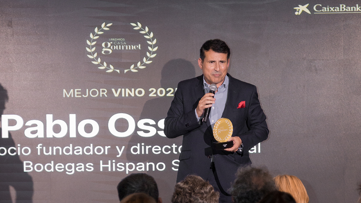 Pablo Ossorio, enólogo y socio fundador de Bodegas Hispano+Suizas, recoge el premio al Mejor Vino 2025 por Bassus
